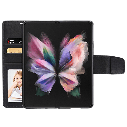 Hanman Wallet Leather Case For Galaxy Z Fold 5 - Black